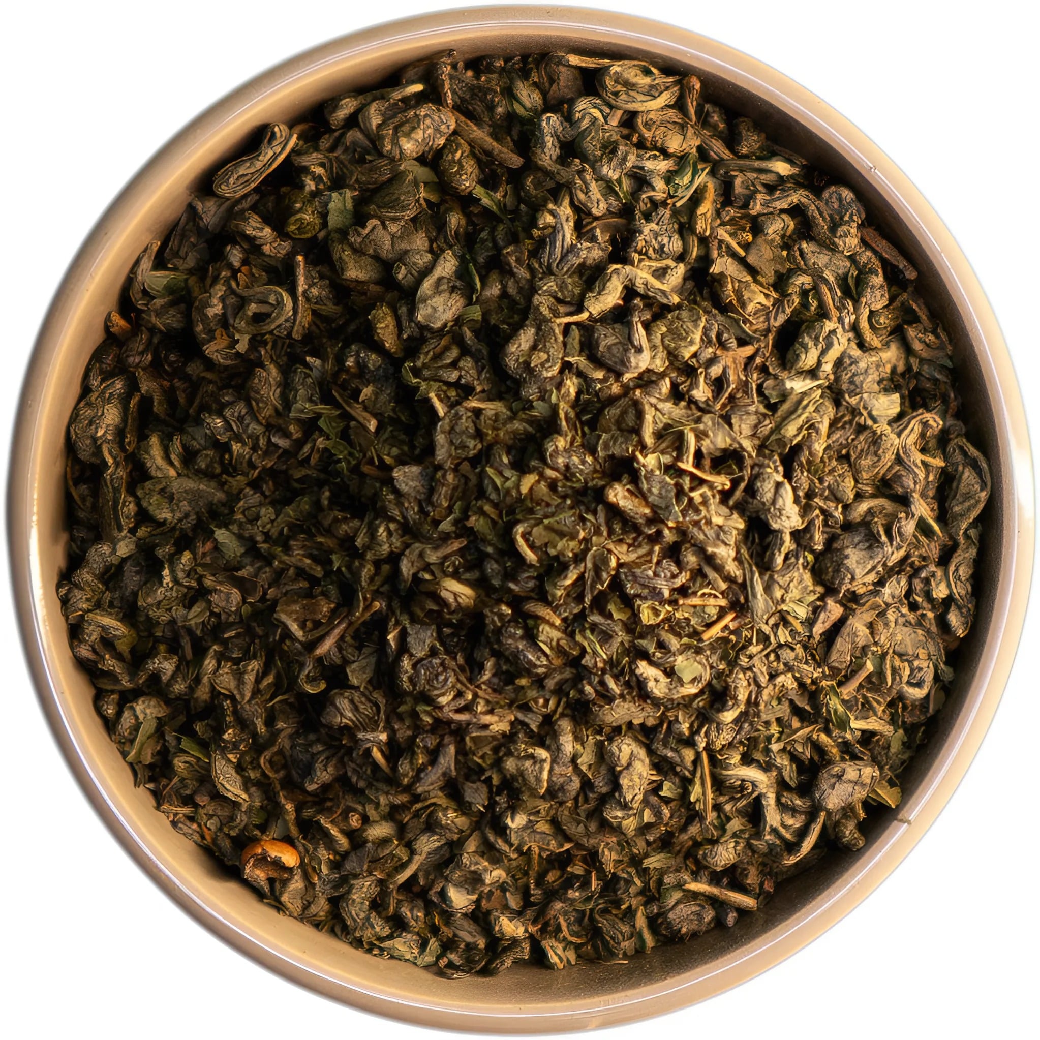 Grüner Menthos kombiniert hochwertigen chinesischen Gunpowder-Tee mit amerikanischer Minze und natürlichem Krauseminz-Aroma zu einem einzigartigen Geschmackserlebnis. Aromatisch und spritzig, ideal als Eistee für heiße Sommertage.