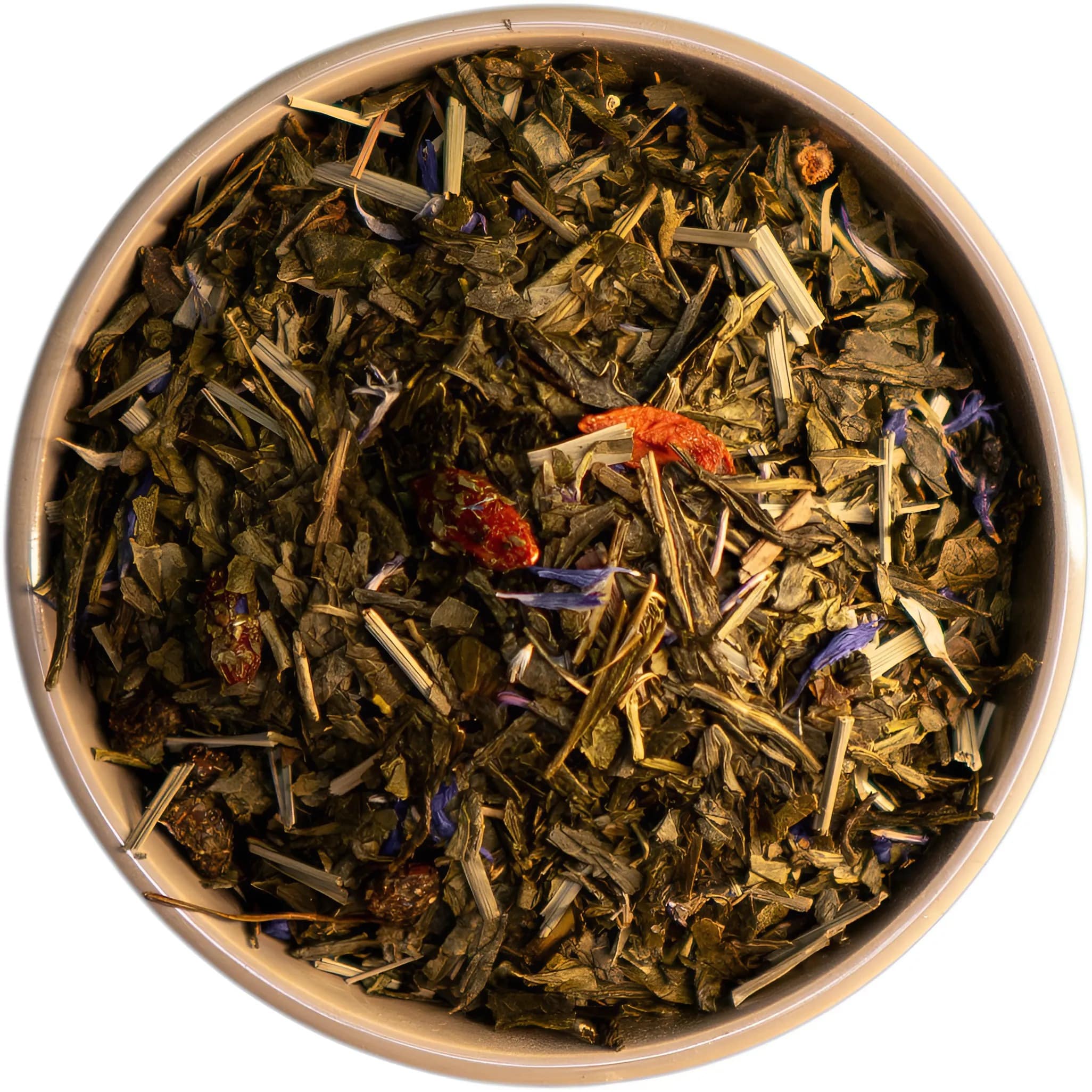 Sencha Gojiberry kombiniert grünen Tee mit Gojibeeren und Granatapfel zu einem fruchtigen Genuss der Spitzenklasse. Diese Mischung beeindruckt mit einer beerigen, fruchtigen und spritzig-süßen Note. Ergänzt durch Zitronengras, blaue Kornblumenblüten und ein feines Aroma, entfaltet der Tee ein leuchtendes Geschmackserlebnis. Ideal für Teeliebhaber, die einen frischen und aromatischen Genuss suchen.