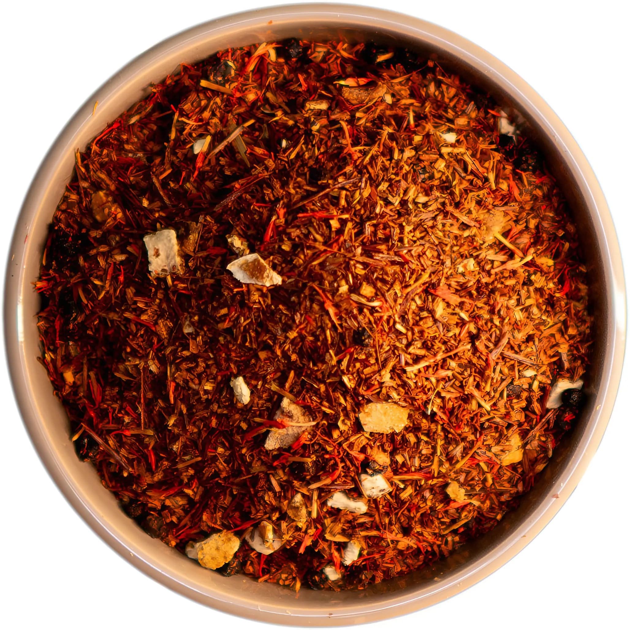 Zutaten: Rotbuschtee, Holunderbeeren, Orangenschalen, Vitamin C, Multivitamingranulat mit Calcium, Saflorblüten, Aroma